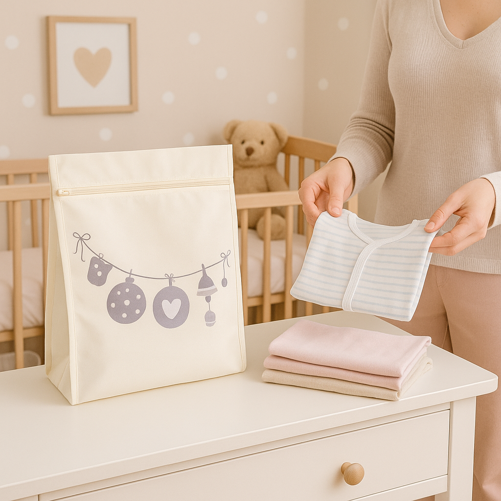 Ya sea que la uses en la lavadora o dentro de la maleta, esta bolsita se convertirá en un esencial para cada mamá o papá que cuida cada detalle.