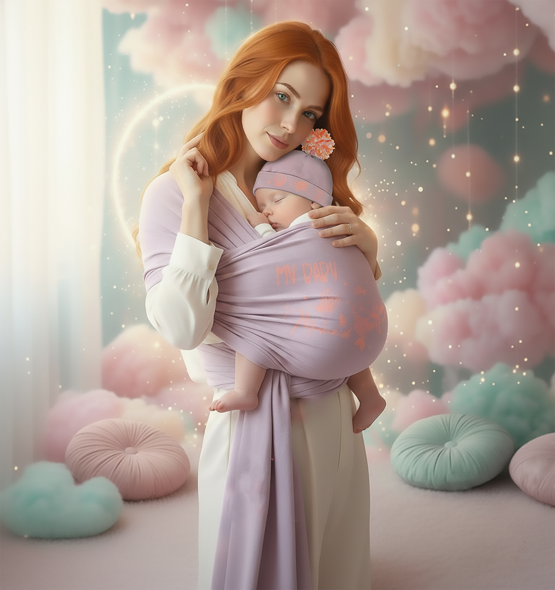 Diseñado para brindar comodidad a mamá y papá en el día a día, este set permite llevar al bebé cerca del corazón con seguridad, suavidad y estilo. El gorrito artesanal, con su pompón teñido a mano, estimula la vista del bebé y completa el look con un toque tierno y original.