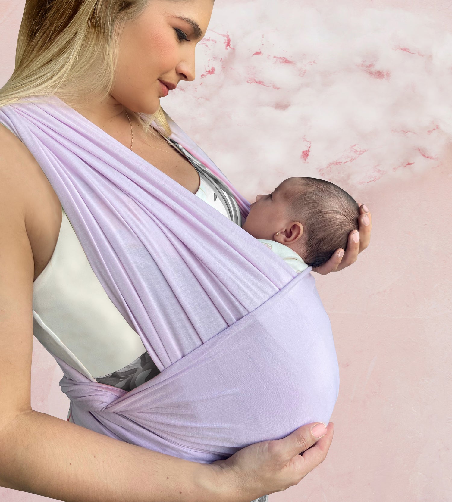 - Ubica al bebé al centro del cruce, asegurándolo con el tejido para un ajuste suave y ergonómico.