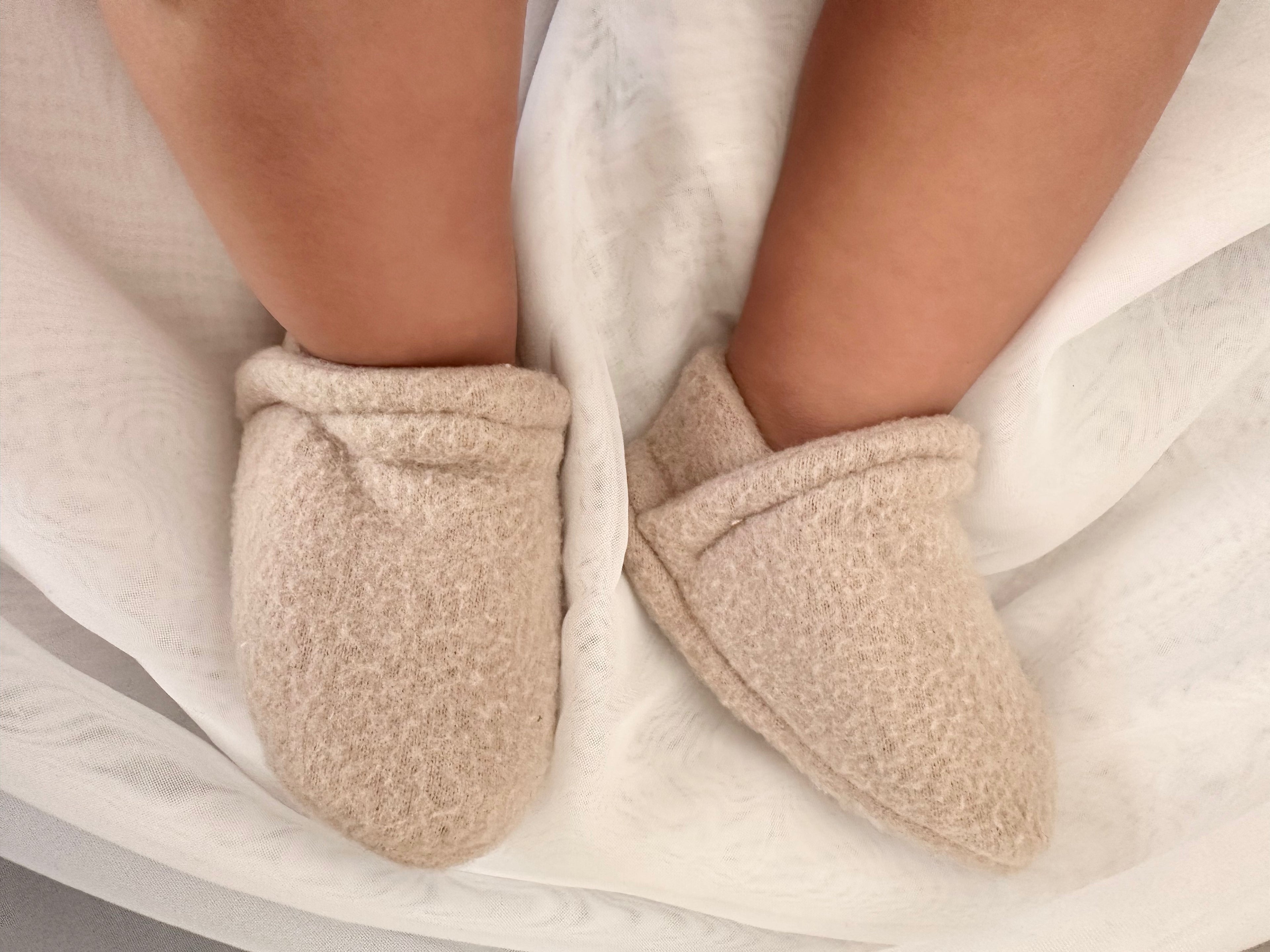 Diseñados para ofrecer un ajuste flexible y ligero, permitiendo total libertad de movimiento mientras abrigan delicadamente los piececitos del bebé.